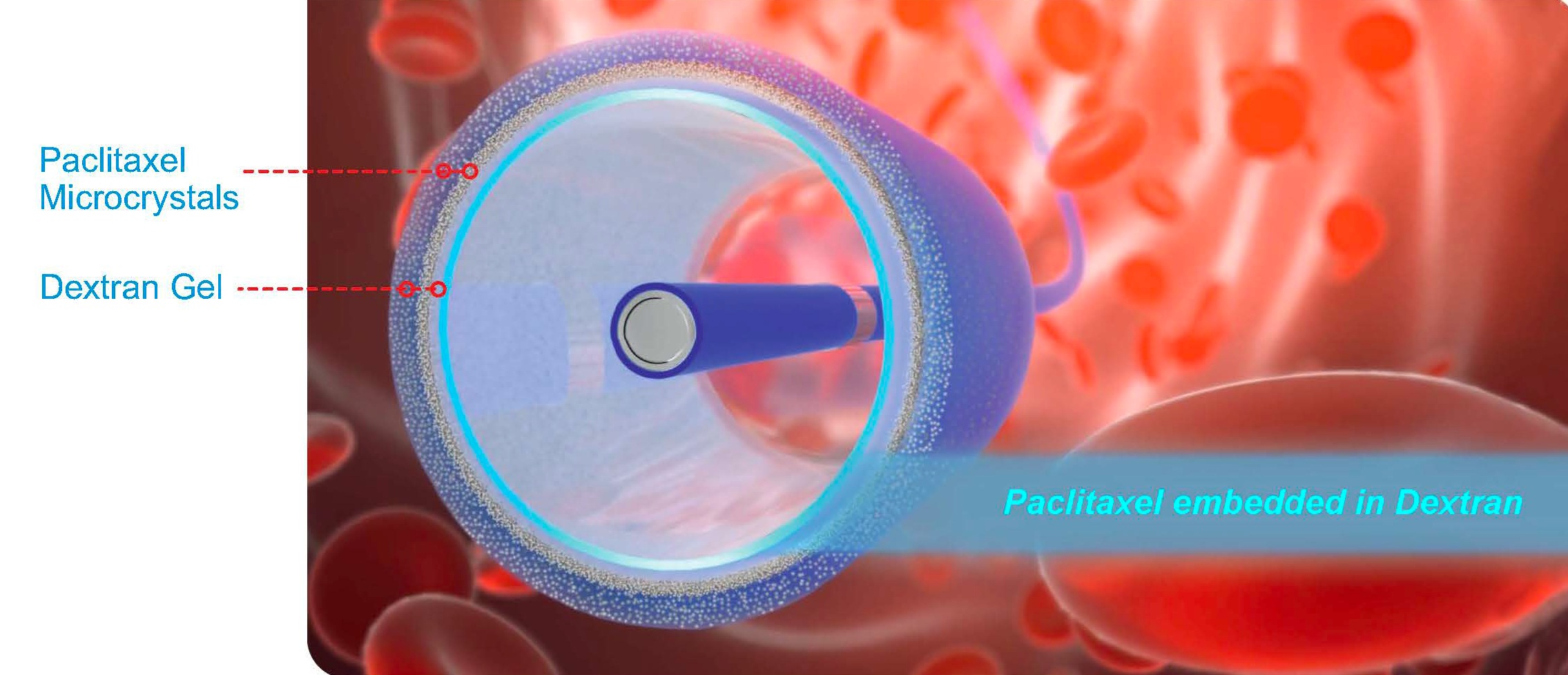 • Αξιόπιστη και παρατεταμένη απελευθέρωση του φαρμάκου στο τοίχωμα του αγγείου με μια μόνο έκπτυξη, με θεραπευτική δράση που διαρκεί εβδομάδες.
